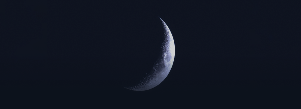 어둠 속에서 밝게 빛나는 초승달이 점진적으로 나타나듯